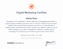 Hi, I’m Nihal Nizar, a digital marketing student and aspiring digital marketing strategist based in Kannur, India. This is my professional portfolio where I showcase my projects in SEO, social media marketing, content marketing, and website optimization.
